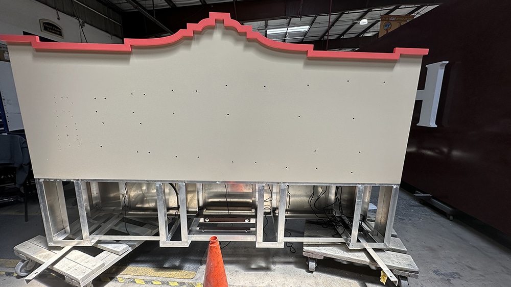 Because the hotel’s interior signage was completed prior to the monument sign, it served as the design benchmark. The monument was intentionally developed to carry through the same visual language: aligning materials, color palette and overall to ensure a cohesive experience across the entire signage package, Weber says. This approach allowed the monument to feel like a natural extension of the interior environment rather than a standalone element.