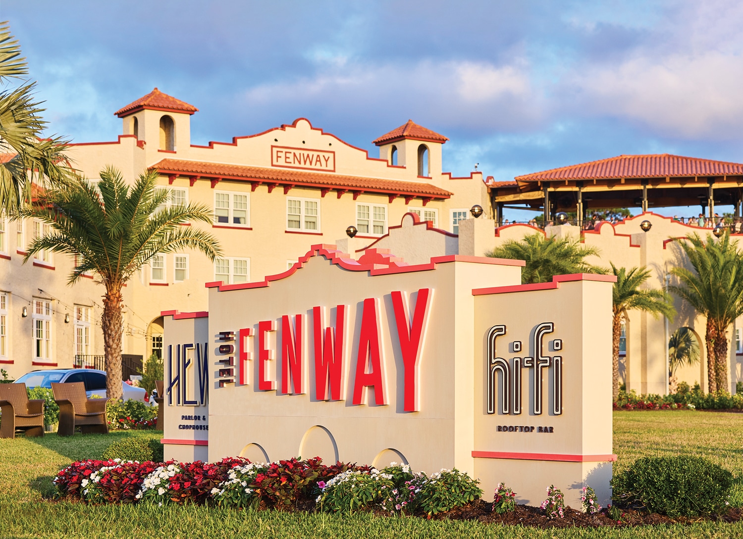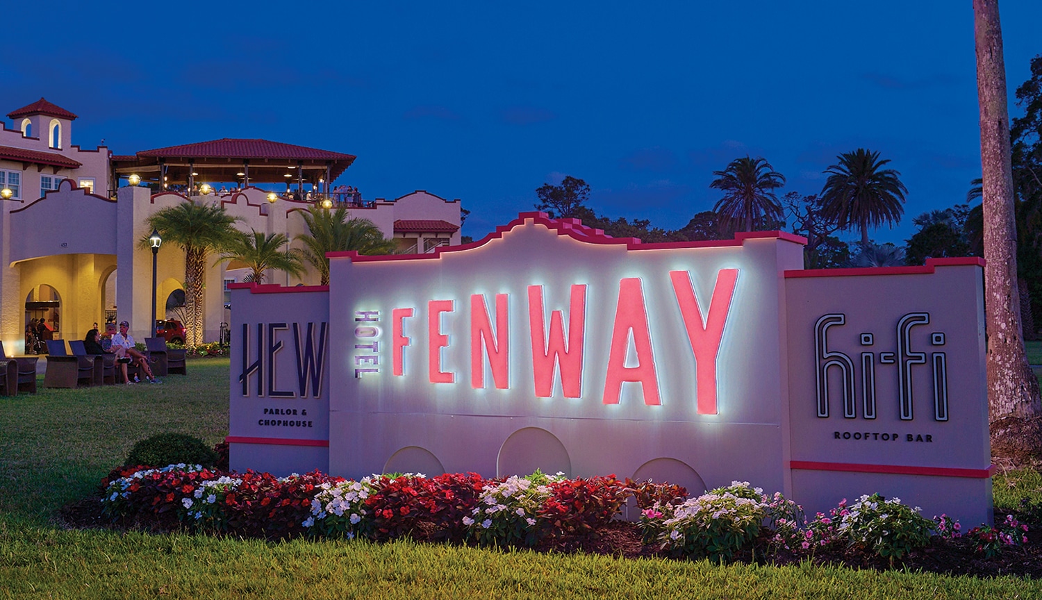 The monument sign was constructed using durable, site-appropriate materials selected to complement the Fenway Hotel’s architecture while being able to withstand the demands of a coastal environment. “The fabricated metal structure incorporates integrated, energy-efficient LED illumination and was fully engineered for hurricane wind loads,” Weber says. “Power supplies were strategically located in elevated, accessible areas to ensure serviceability while reducing risk in the event of flooding during severe weather.”