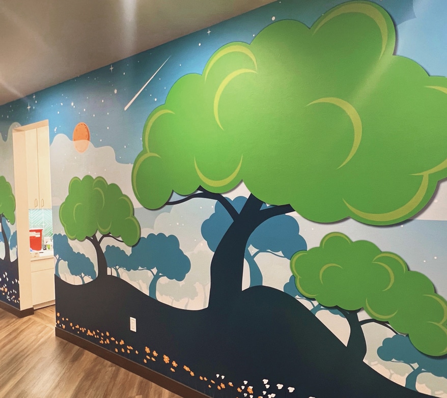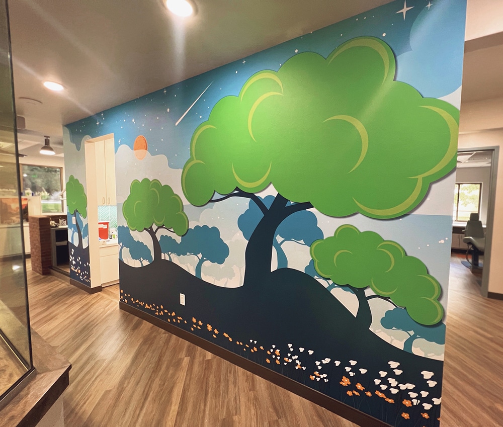 3 For many years now, wall murals have provided very specific means by which health care facilities have attempted to foster a calm interior environment, especially those serving children. High up in the Centennial State, Signarama Brighton (Brighton, CO) works closely with a general contractor whose primary focus is dental offices.