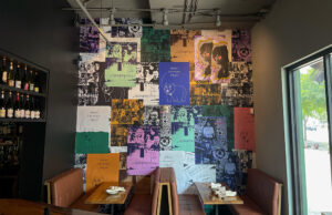 “We combined elements of the restaurant’s brand image along with colors, imagery, words, people and art that celebrated El Raval’s diversity, vibrancy and bold street art scene, with a touch of a grunge aesthetic,” Toynes says. “The designs, paired with the wheatpaste poster application, created a beautiful texture with layers and intentional tears, as well as a sense of realism, as if a wall had been plucked from the streets of Barcelona and placed inside the restaurant.”
