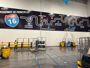 ABOVE PHOTO: A wraparound wall graphic for Amazon’s DJZ8 fulfillment center.