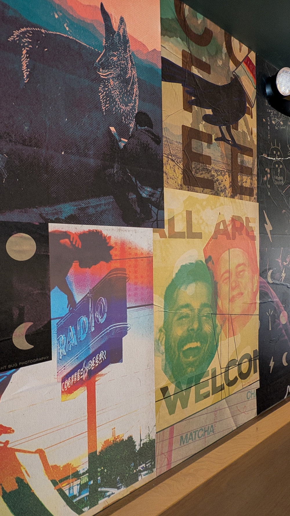 However, like an evening Spanish meal, more was to follow in the state capital. Radio Coffee & Beer has been an ongoing branding and marketing assets partner of Studio Dzo. “The owners of Radio went to El Raval and saw the wheatpaste mural and asked ‘who did it?’” Toynes says. When they found out it was Studio Dzo, Radio Coffee emailed the next day about doing something similar at their new location.