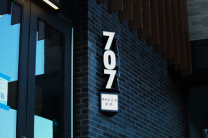 707 Pizza (Colorado Springs, CO) returned to hometown Sign Shop Illuminated (SSI) based on the success of their Penrose-location signage. After about a dozen design iterations, SSI used laser-cut Corten steel to reveal the smaller logo and “Pizza Co.” lettering, which was backed with white acrylic to provide contrast and illumination for the main exterior sign, according to Louis DeSantis, SSI managing partner. The shop used their CLN of South Florida channel letter bender, Colex CNC router and Principal Sloan LED lighting. DeSantis is most proud of the “continued trust of a returning client and the opportunity to lead the entire design process from concept through completion,” he says.