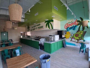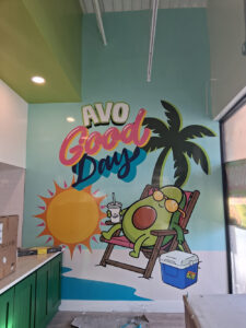 When Jesús and Erin Rosado, owners of His & Her Studio (Loxahatchee, FL), arrived at Guaca Go in nearby Tequesta, the back wall they were planning to install on wasn’t for vinyl as expected, but provided wallpaper, according to Erin. So they knocked that out in a day then returned to install the ORAFOL ORACAL 651 lime-tree vinyl, Fellers Black Label cast vinyl and gloss laminate produced on their HP Latex 360 Printer. “In the end, it’s those unexpected surprises that keep our work interesting and showcase the importance of experience and adaptability on site,” Erin says.