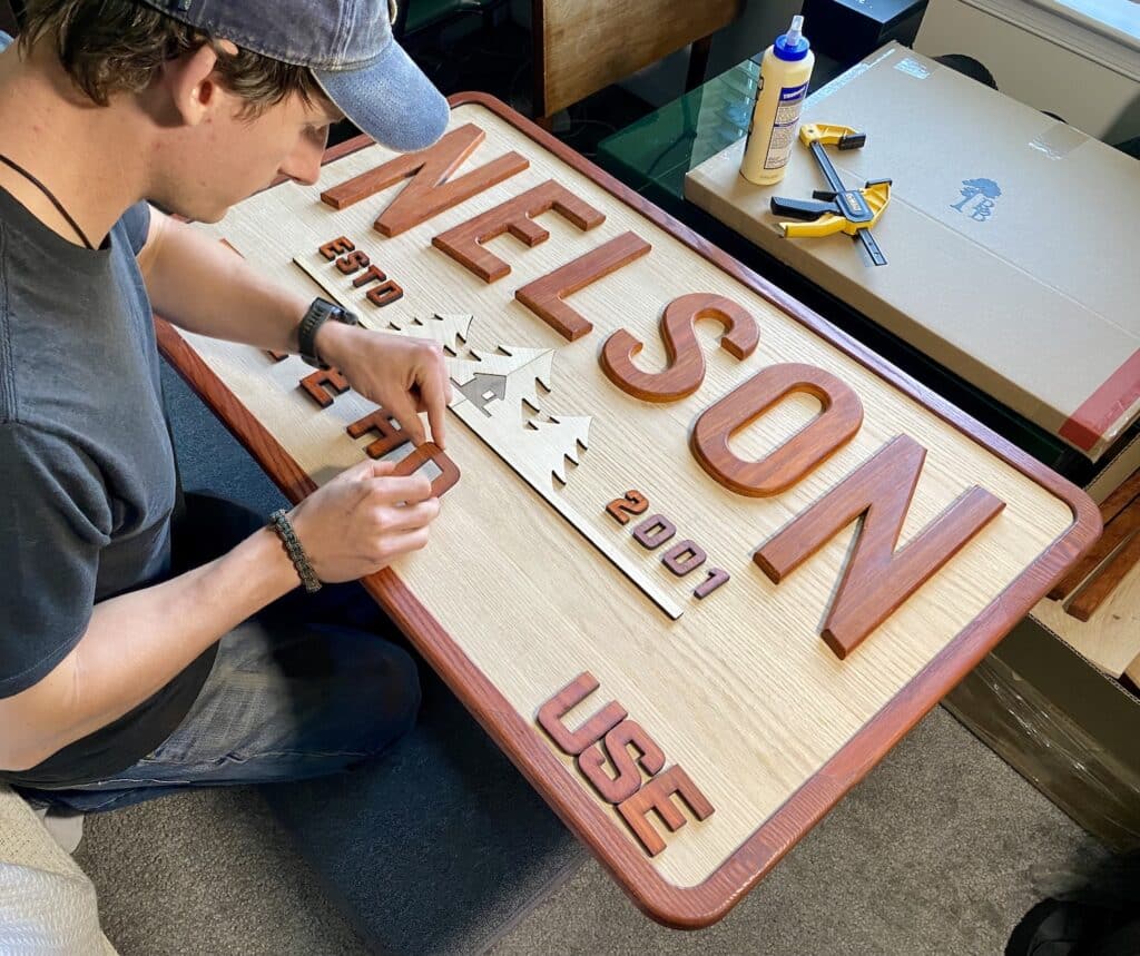 The same goes for dimensional lettering. Machines help with precision, but assembly, alignment and finishing are still very much hands-on. Chisels, sanding and careful planning are still part of every build.