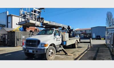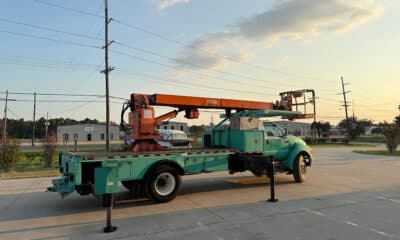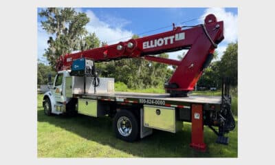 2014 Elliott G85R on International Auto Trans, DT466, 123,000 miles, 5,900 lb. winch, 500 lb. platform jib, 40×60 EZR Platform, Sign Forks, Welding leads, 110 Volt,...