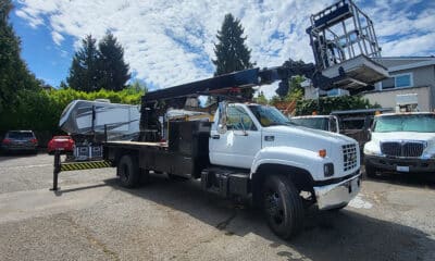 2001 Chevy Crane / 2 man basket truck. SX-57 Skyhoist 57′ 2 PERSON Basket 600lbs 6000lb crane. Caterpillar 3126 Engine newly rebuilt, new injectors, gasket set,...