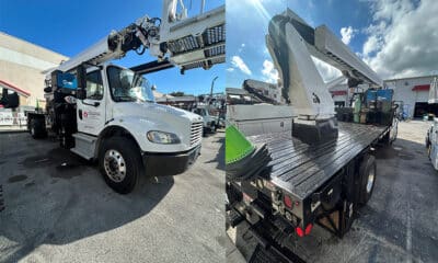 2007 with a Skyhoist SX60 remote double bucket with jib. Auto trans, AC clean interior and exterior. Steel bed with 4 outriggers. Lincoln 9000 watt welder...