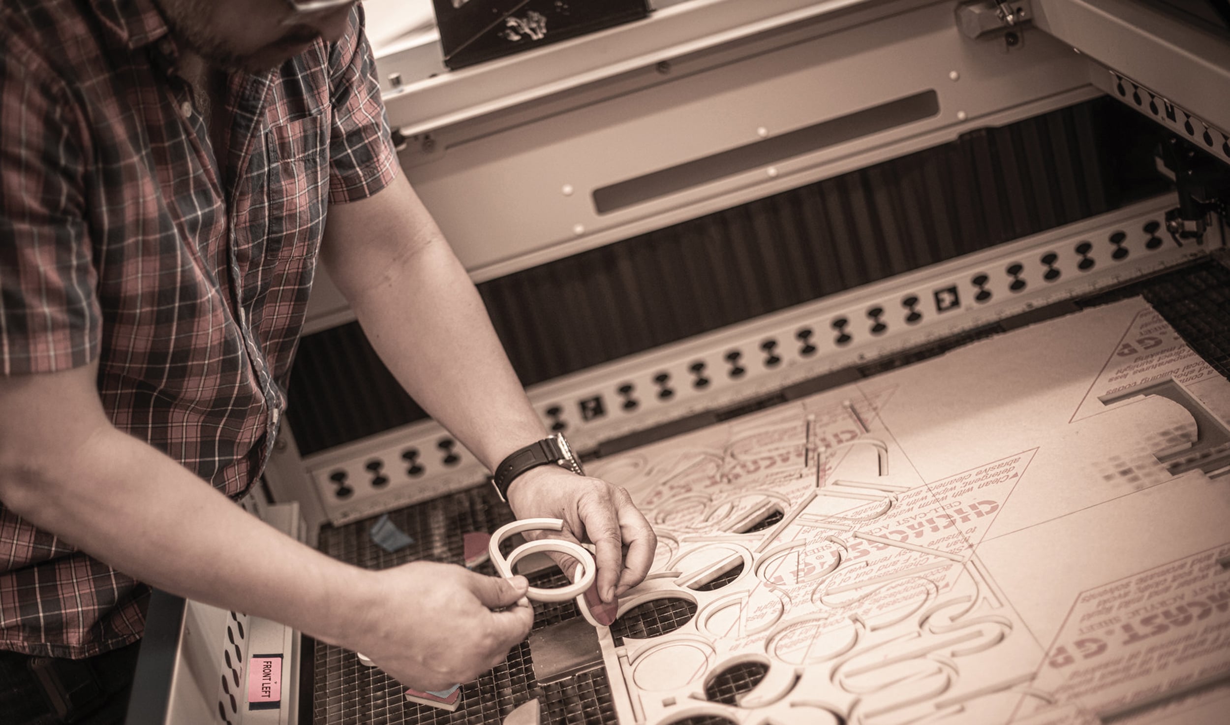 1 “If your business uses lasers to engrave or cut plastics, inspect and make sure your fume-exhaust system is performing as it should,” advises Thomas Nance, Signarama Louisville Downtown (Louisville, KY). Fume extraction not only removes the smelly fumes, but also keeps the laser’s optics and the motion-control system cleaner by removing smoke and debris particles before they can settle on components inside the cabinet, he explains. Meanwhile, Matt Robinson of Eastern Sign Tech (Burlington, NJ) suggests showing the seam for material constraints on drawings and not hiding it halfway in the final product.