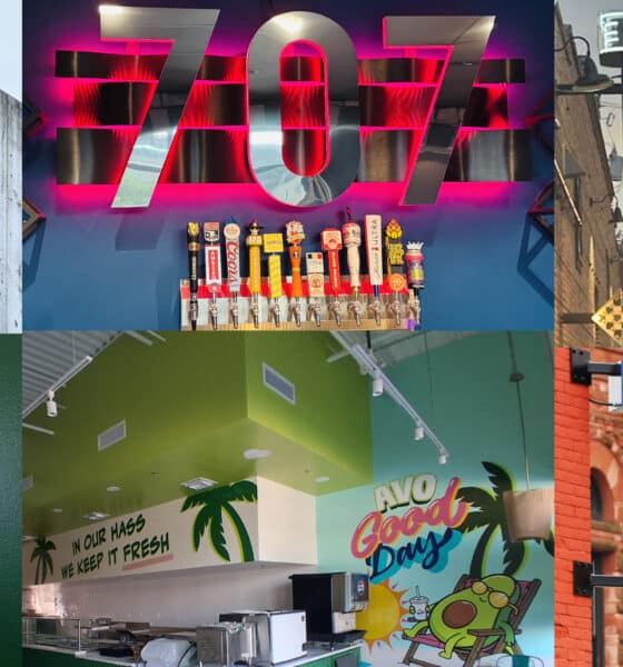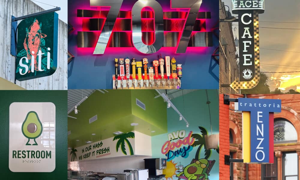 Rooftop, hanging and wall signs ask, “What’ll you have?”