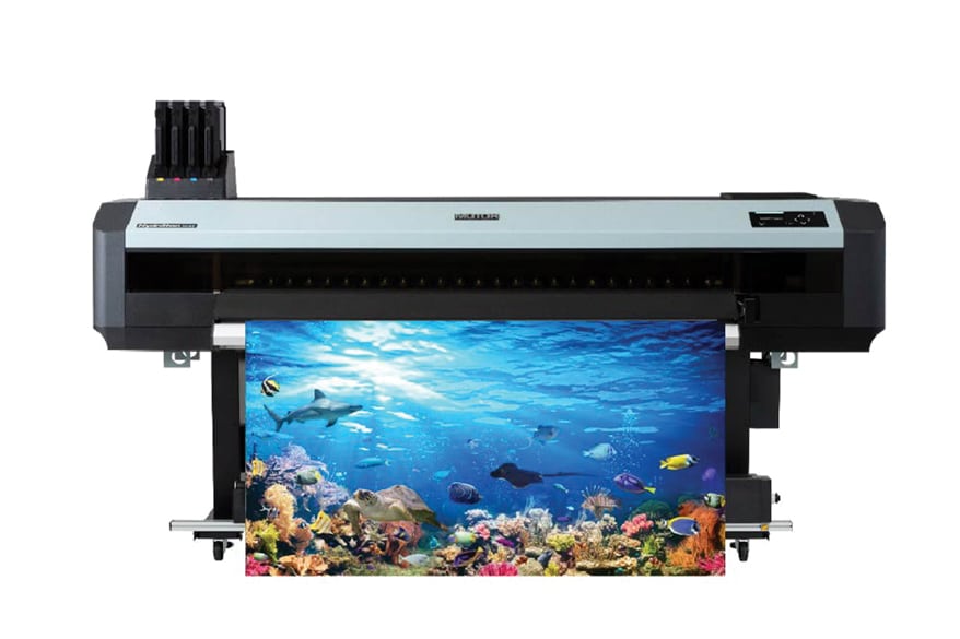 64-in. roll-to-roll printer equipped with AQUAFUZE UV-curable water-based ink made for stable water dispersion of photopolymers. Offers low-odor and VOC output, classified as GHS hazard-free and requires no hazard pictograms. Operates at drying temperatures between 86°F and 122°F, enables printing on heat-sensitive media while reducing energy consumption. Does not require primers or overcoats. Supports indoor graphics and soft-signage applications including light-duty vehicle wraps, wallcoverings, window graphics, POP displays and décor.