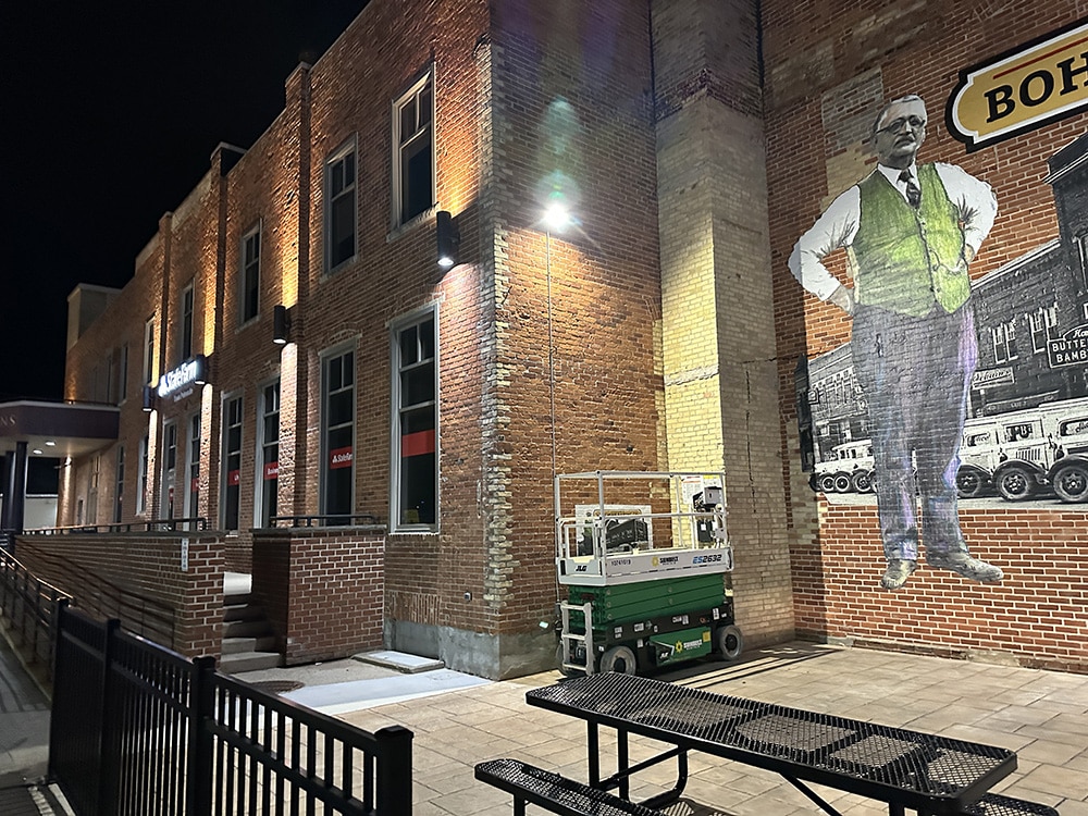 One of the jobs that helped to build the installers’ appetite had been commissioned by the Downtown Green Bay Inc. (DGBI) to create a historical mural on the side of a building downtown. “We were provided with a clear focus from the start: to focus on the historic building’s heritage and the man that helped put it together,” Marquardt says. DGBI and the local Neville Public Museum provided Art City with black-and-white digital images to form the basis of the art.