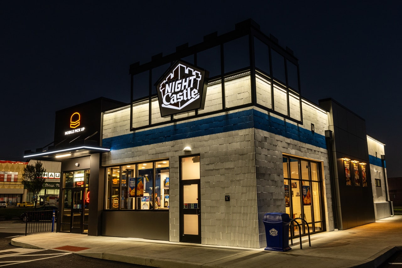 White Castle’s new “Castle of Tomorrow” prototype goes by “Night Castle” by night.
